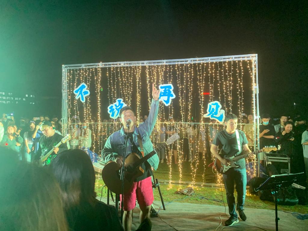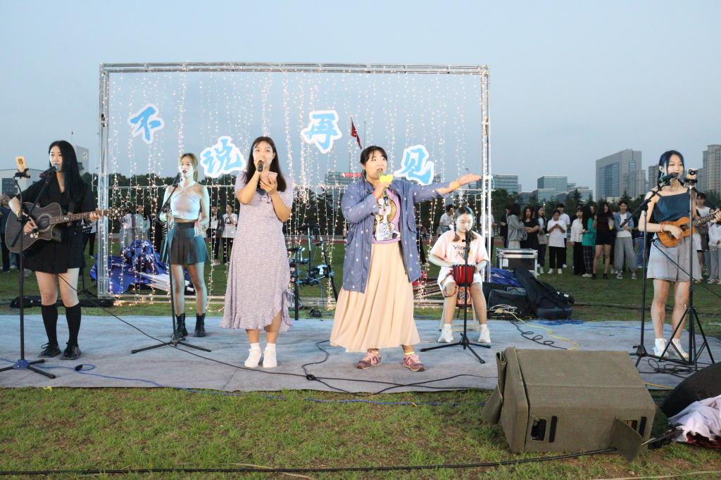 6月15日晚,校团委主办的“不说再见”2021届毕业生草坪音乐节在学校操行举行。飞扬的歌声,吟唱着满满的青春故事与回忆,凝聚了心中不变的真情;熟悉的旋律,演绎着对毕业生的祝福,回荡着情怀不变的真切。