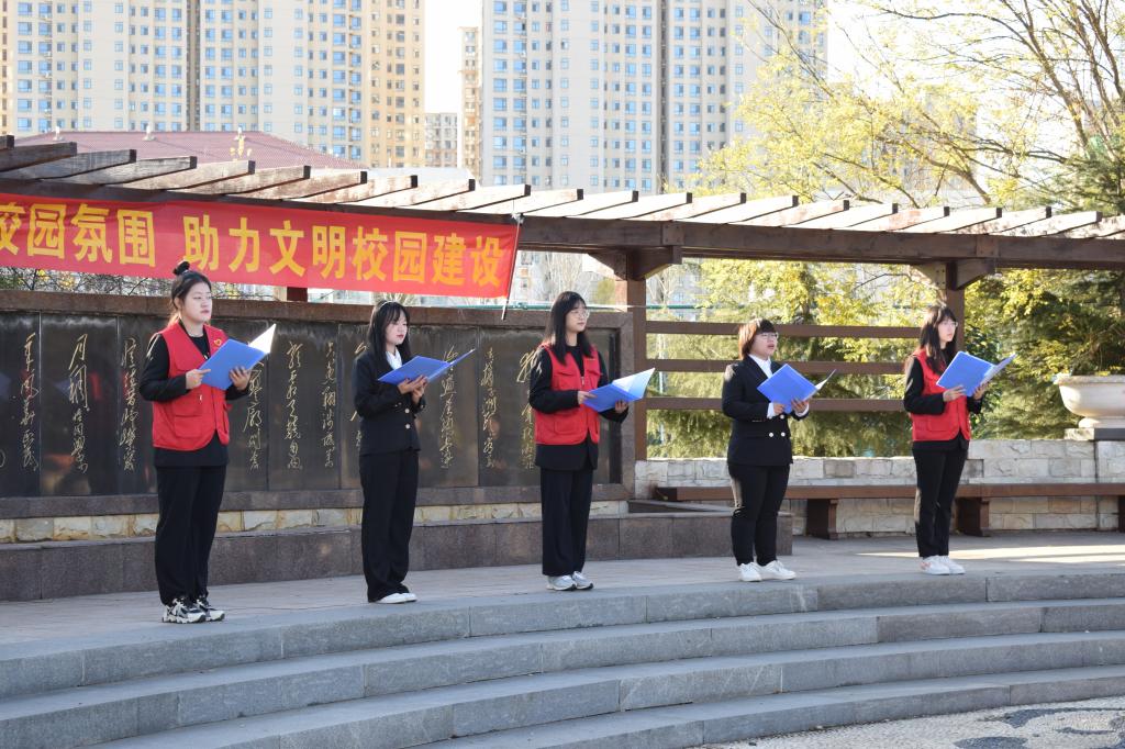 12月3日上午九点,我校于综合楼南侧广场开展校园绿地小径认领活动。副校长苏春景、党委宣传部部长杨帆、校团委书记申海滨、各学院党总支书记、副书记、团总支书记,以及学生代表参加了本次活动。