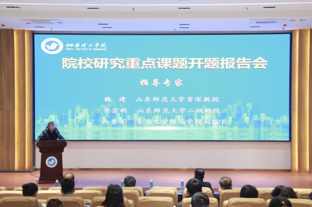 12月22日上午八时许,我校2021年度院校研究重点课题开题报告会在综合楼六楼报告厅拉开帷幕。此次报告会特邀国家“万人计划”领军人才、国家重点学科学术带头人魏建资深教授,山东师范大学博士生导师、享受国务院特殊津贴专家李宗刚二级教授,青岛大学师范学院副院长、山东省教育类专业教学指导委员会委员马勇军教授亲临指导,各二级学院负责院校研究的院长、副院长,各职能部门院校研究的负责人,2021年度烟台理工学院院校课题负责人以及其他有申报院校课题意向的教职员工参会。会议由副校长苏春景教授主持,魏建教授担任2021年度院校研究课题开题委员会组长。