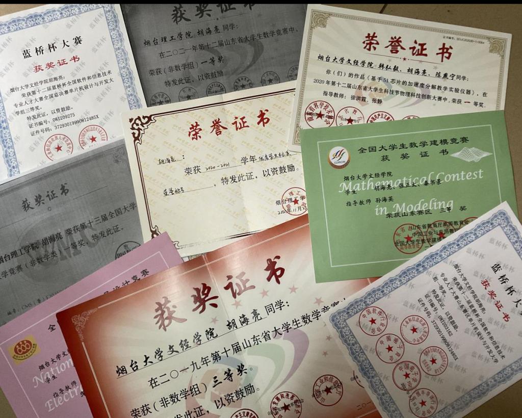 【当他被问及有什么学习方法时】胡海亮说:“上课认真听讲,下课认真完成作业,好好预习和复习,永远都要把学习放在第一位,真正摆正自己的心态,不要让其他的事情影响到学习。同时,做任何事情都要有自己的计划,对于考研,我的建议是精确到每周即可,这样就不会让自己迷茫,就会让自己每周都有任务,保持前进的方向,这样就会感觉到每天都很充实,使自己的信心每天都会增加。”虽没有特殊的捷径,但这样的态度也正是别人难以达到的。胡海亮参加了很多比赛,获奖无数,但比赛所需要的专业技能都是在课堂上学不到的,因此在比赛的准备过程总会遇到过无数的困难。一旦遇到,他都会尽可能地去解决,如跟同学或老师进行沟通。