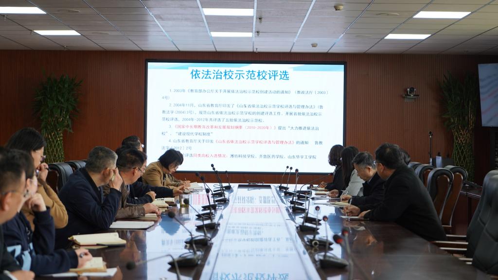 会上,发展规划处传达了《山东省教育厅关于开展全省依法治校示范校创建工作的通知》(鲁教法函〔2023〕2号)要求,对《高等学校法治工作测评指标》任务分工进行了细化讲解,对创新点进行了重点说明。