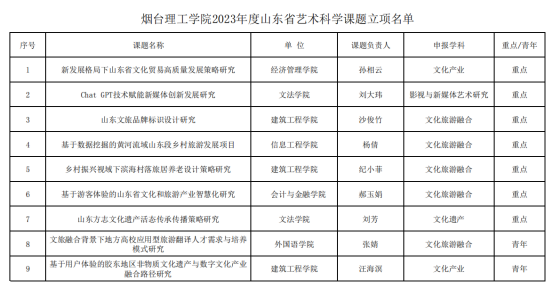 我校9项目喜获山东省艺术科学课题立项