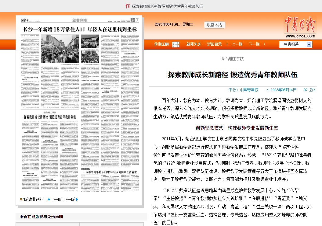 中国青年报报道我校探索教师成长新路径,锻造优秀青年教师队伍
