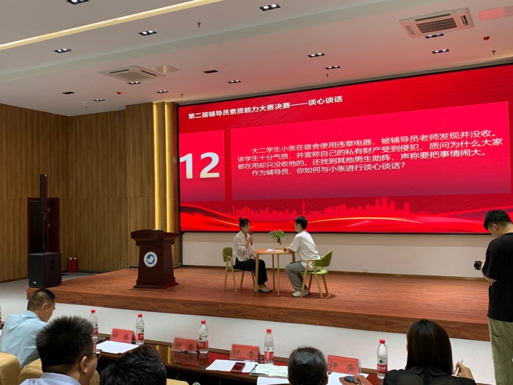 本次大赛共有46名参赛选手参加了初赛笔试,22名参赛选手进入复赛,12名选手进入决赛,7月7日,在综合楼六楼报告厅举行第二届辅导员素质能力大赛决赛,校长助理、学生工作处处长杜娟出席本次比赛,各学院党总支书记受邀担任大赛评委,全体辅导员台下观摩比赛。