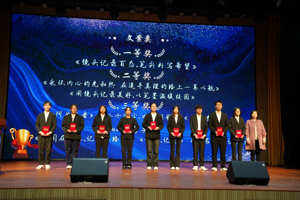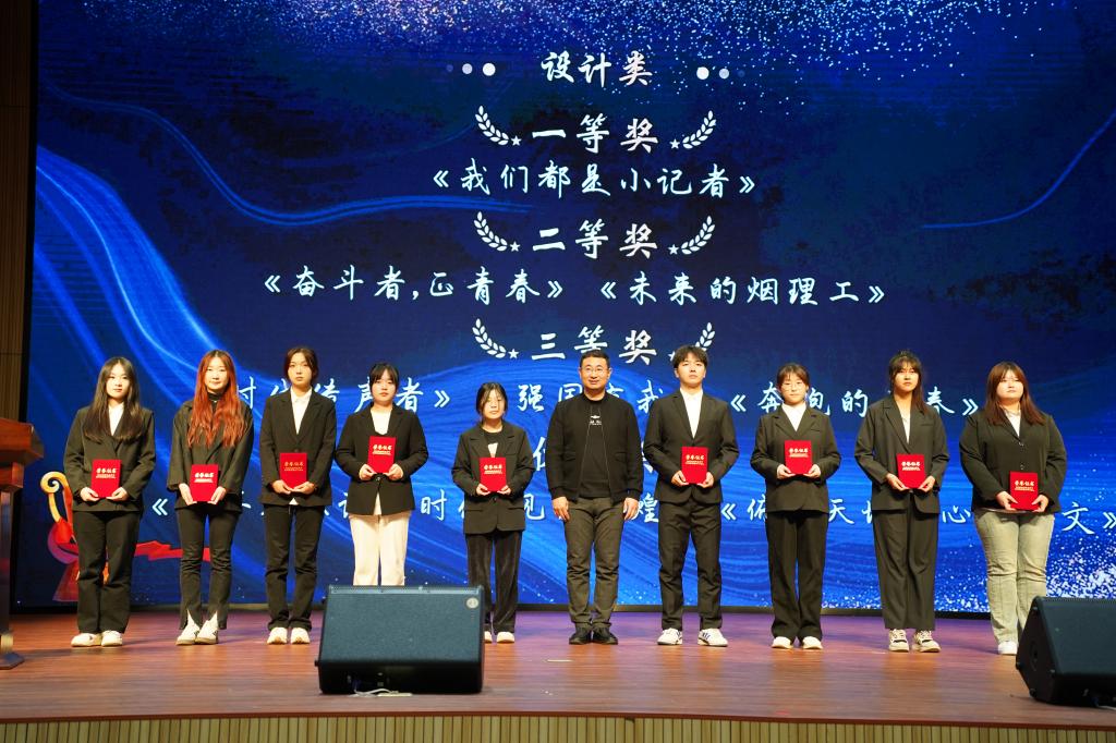 随后,学院领导分别为本次记者节大赛获奖同学颁发荣誉证书,并合影留念。本届记者节共设立短视频创作、平面设计创作及创意文案写作三项比赛,通过丰富的创作主题和多样化的赛道鼓励同学们发挥自己的特长优势,培养同学们创新创作能力。同学们踊跃参与,涌现出一系列优秀作品。