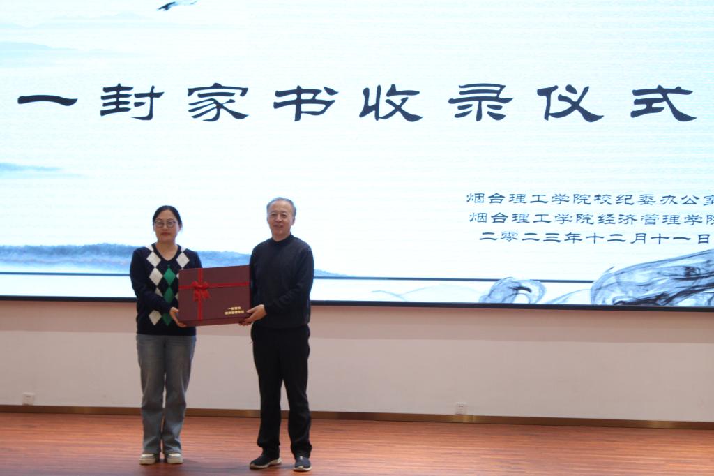烟台理工学院校长助理杜娟和经济管理学院院长华吉鹏共同完成了“一封家书”院校收录仪式交接。这无疑为经济管理学院的未来发展注入了新的活力与信心,同时也为活动的圆满成功画上了完美句号。