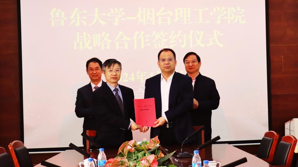 为了深化高等教育领域合作,促进校际间在教育教学、科研成果转化等方面的深度融合,共同提升教育质量与科技创新,更好地服务地方经济发展,4月24日上午,校长于光辉、副校长苏春景一行前往鲁东大学,在一号办公楼二楼第三会议室举行战略合作协议签约仪式。鲁东大学校长李合亮出席仪式,副校长陈厚主持仪式,人事处、科学技术处、服务地方办公室、教务处等部门负责人参与座谈。