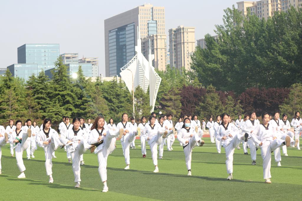 闭幕式上,长拳、跆拳道、太极等综合表演展现出了学子们昂扬向上的精神风貌,精彩的表演引得观众席阵阵欢呼。