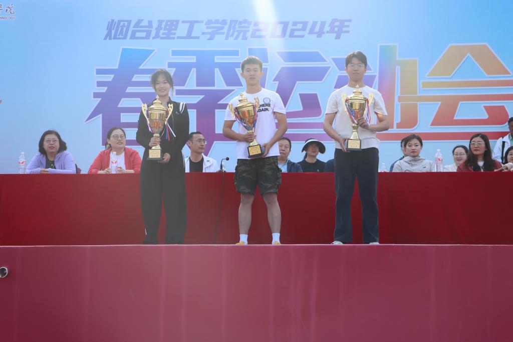 本届运动会历时两天,运动会各项赛事圆满完成,来自全校10个学院,15支代表队1100多名运动员,取得了优异成绩,共有7人打破7项大会记录。经过激烈角逐,获奖结果如下:学生女子组团体总分前三名为经济管理学院、会计与金融学院、文法学院;学生男子组团体总分前三名为机电工程学院、经济管理学院、信息工程学院;学生组团体总分前三名为经济管理学院、会计与金融学院、信息工程学院;教工组团体总分前三名为机电工程学院、教工3队、信息工程学院;人工智能学院、食品与生物工程学院、建筑工程学院获学生组体育道德风尚奖;教工4队、外国语学院、图书馆获教师组体育道德风尚奖。公布完毕,校领导为获奖代表依次颁奖并表示祝贺。