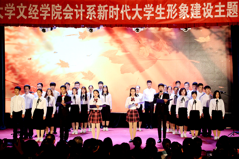 晚会在歌曲《稻香》中拉开序幕。晚会精彩纷呈,街舞《Are you ready》激情四射,相声《我是大学生》通过诙谐的表演,充分体现了会计学子向上的精神风貌,朗诵《感恩有你》感恩新时代赋予当代大学生的幸福生活;歌曲串烧带领观众聆听青春旋律,小品《你的模样》在歌颂山区人民教师无私奉献的同时,生动反映了当代学子回馈社会、实现自身价值的思想觉悟。晚会现场自始至终群情激昂、掌声不断。会上还为会计系新时代大学生形象建设活动中的先进个人和先进班级颁奖。
