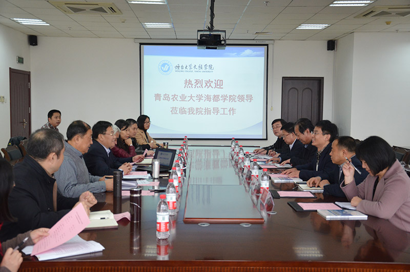 3月28日上午,青岛农业大学海都学院院长肖传强一行五位院领导及随行人员来我院考察。院党委书记、副院长李相然,副院长王来武、刘孔庆,院长助理莫红菊及相关部门负责人在六楼会议室热情接待了客人。