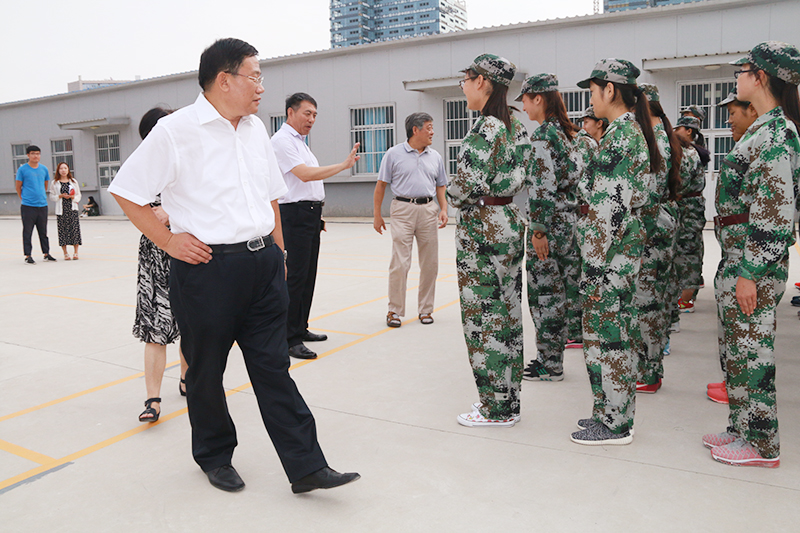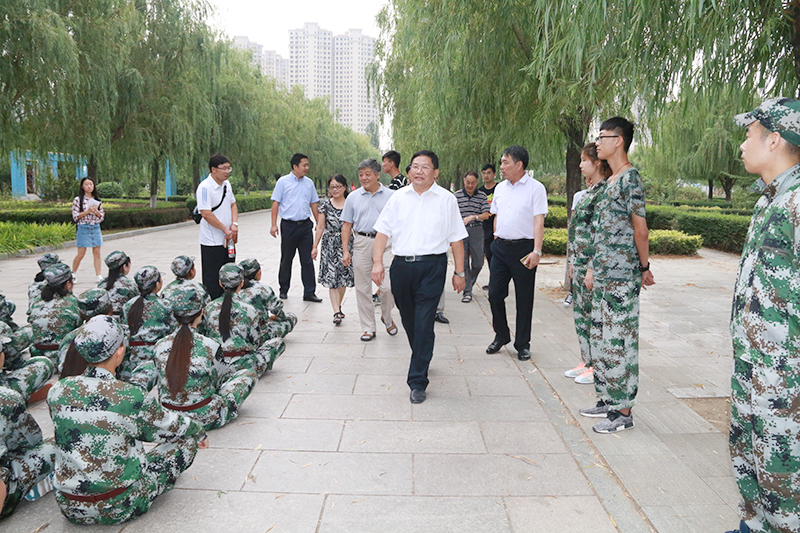 9月7日上午,学院党委书记、副院长李相然在相关职能部门负责人陪同下,前往2016级新生军训场地进行视察。