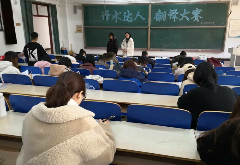 此次比赛以“扬‘翻’起航,‘译’鸣惊人”为主题。比赛形式以笔试为主,考察内容包含句子、片段翻译两方面,试题形式分为英译汉和汉译英,其中不乏有汉语俗语、文化背景等试题,内容灵活且富有一定的挑战性,充分考验了同学们的英语综合运用能力。比赛过程本着公正严格的原则,清理一切与考试无关的设备和书籍资料,考官公平公正进行监考,参赛选手沉着自信,冷静作答。为鼓励学生,本次比赛为表现突出的参赛者分别设置了一、二、三等奖及优秀奖。