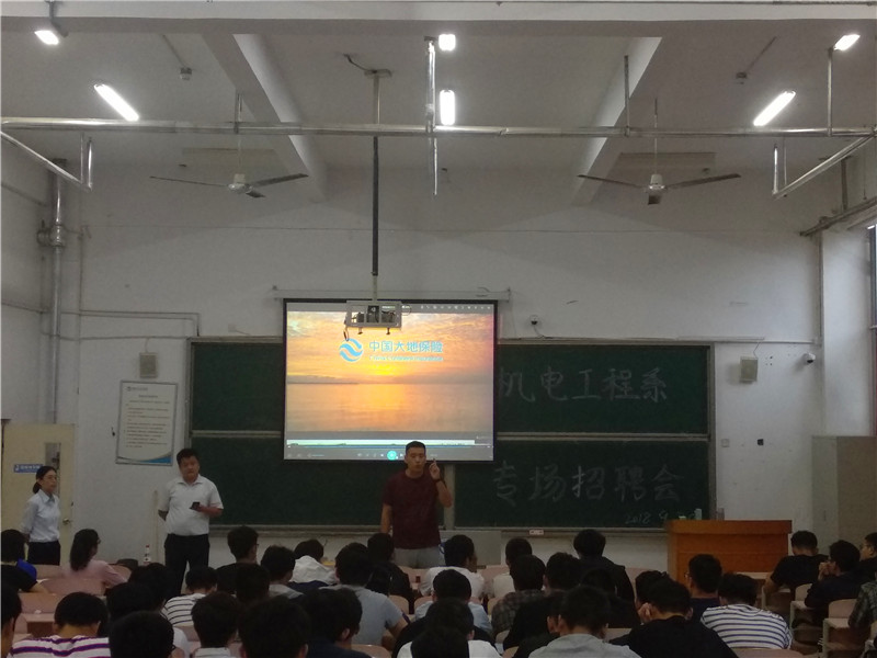 此次招聘会由李亮老师主持,会议伊始,由李老师就当前的就业形势,机电系以往的就业率及就业经验为大家做了总结分享。紧接着,由大地保险的林经理就中国大地保险公司的简介、员工的职能以及员工的薪资待遇等多个方面为大家做了详细的介绍,同时林经理也为在场的同学们推荐了适合机电专业的岗位,如:车险理赔查勘员、渠道服务专员等。在现场提问答疑的环节中,两位经理都积极的回答了大家提出的问题。在招聘会上,李经理讲到,“要学会把最好的自己更好的推销出去。”对每一位招聘者都是受益匪浅的建议。李亮老师提醒同学们,调整心态,积极就业。山不厌高,海不厌深,最后两位经理也预祝各位毕业生前途光明似锦,未来曼妙如花。