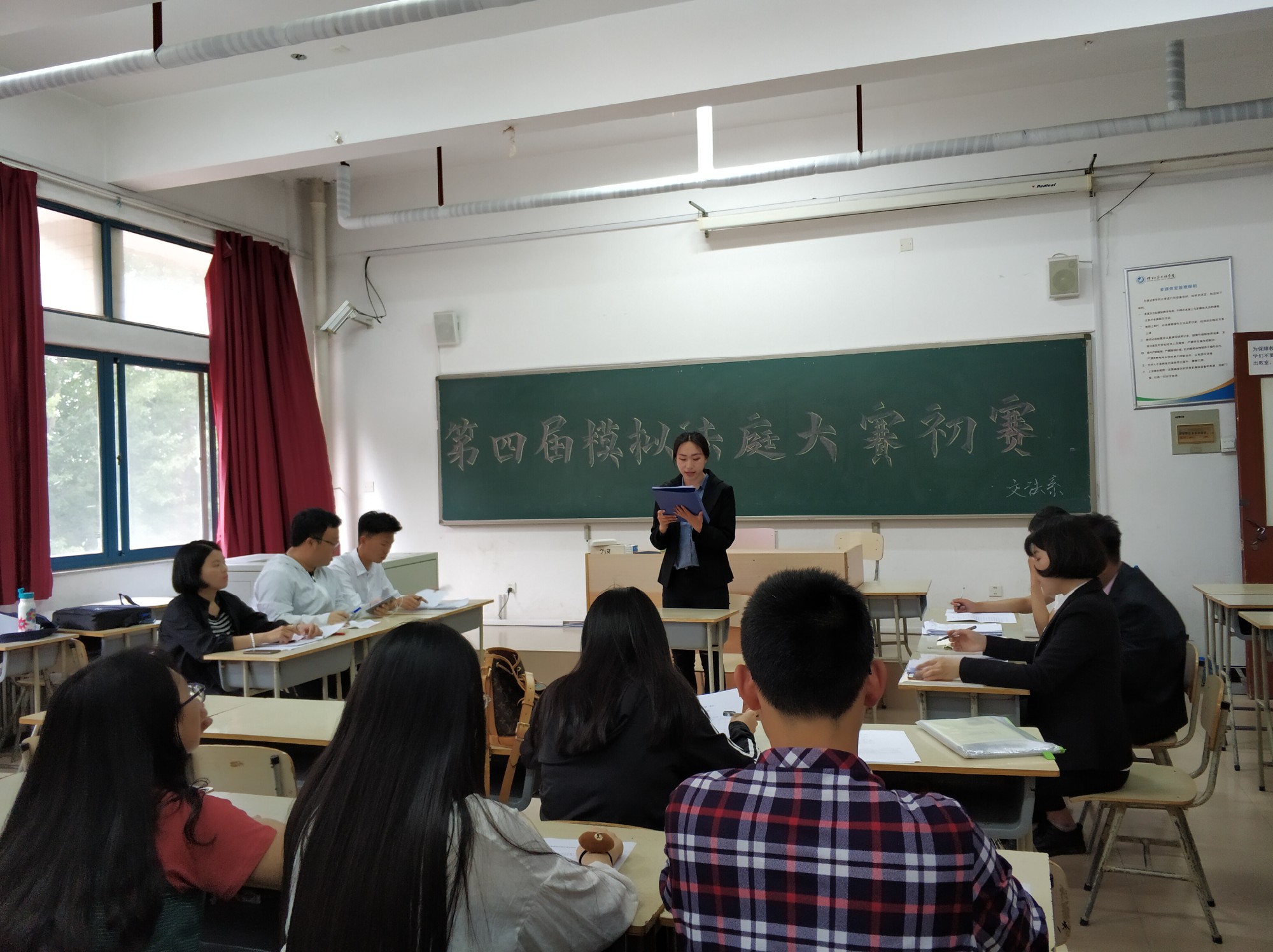 5月14日晚,文法系于一教举办了第四届模拟法庭大赛初赛。本次大赛共有12个参赛队伍,分为三个赛场,每个赛场均进行两轮比赛,由文法系法学专业全体老师及学生代表担任评委。
