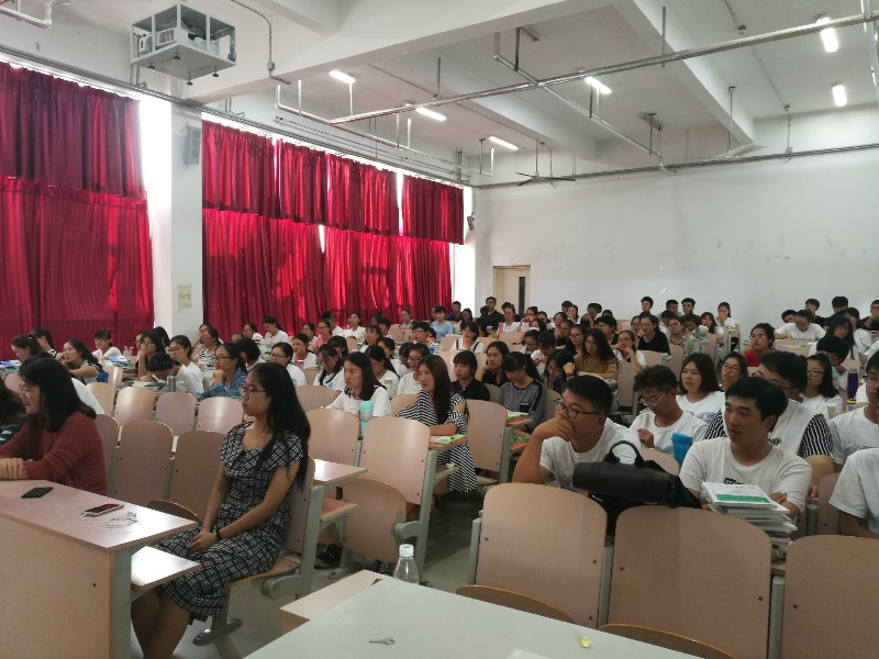 讲座伊始,丁老师从专业发展现状以及就业率入手,深入浅出的分析了各专业工作环境的变化、社会环境的挑战、未来的学习任务等基本情况,让新生对所学专业的就业方向和前景有了明确的理解。结合个人经历,丁老师又向大家解读了大学跟高中的区别,呼吁新生要尽快从高中伏案苦读,不问世事的状态中走出来,应在大学里学会用独到理性的眼观认识事物,开阔视野,增长见识。在讲座过程中,丁老师多次通过一些案例名言向新生解读了念大学的正确姿势,强调知识和能力多维度拓展,多参与校园活动和社会实践,抓住每一次锻炼的自己的机会,提升个人综合素养。最终,讲座在同学们的热烈掌声中圆满结束。