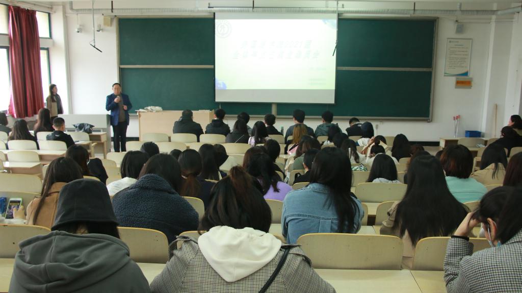 为了让毕业生明析当今严峻的就业形势,抓住机遇,把握好就业机会,较早就业,实现人生价值,外国语学院于4月23日上午在一教306召开了外国语学院2021届全体毕业生就业动员会。外国语学院党总支书记张廷国教授、学院团总支副书记、学生会指导老师董瀚文老师、辅导员王君老师、王翔宇老师,外1702-1班班主任孟范英老师、外1703-1班班主任季冰老师、外1811-2班班主任贺婷婷老师以及2021届全体毕业生出席参加了此次就业动员会。