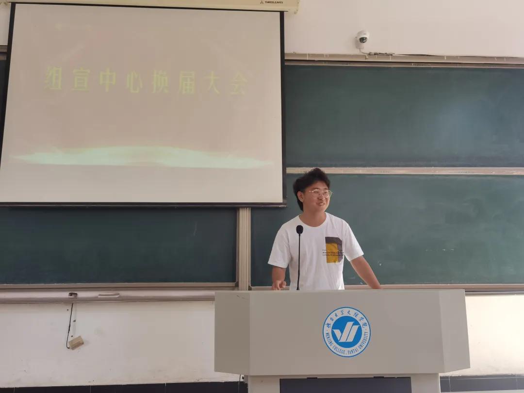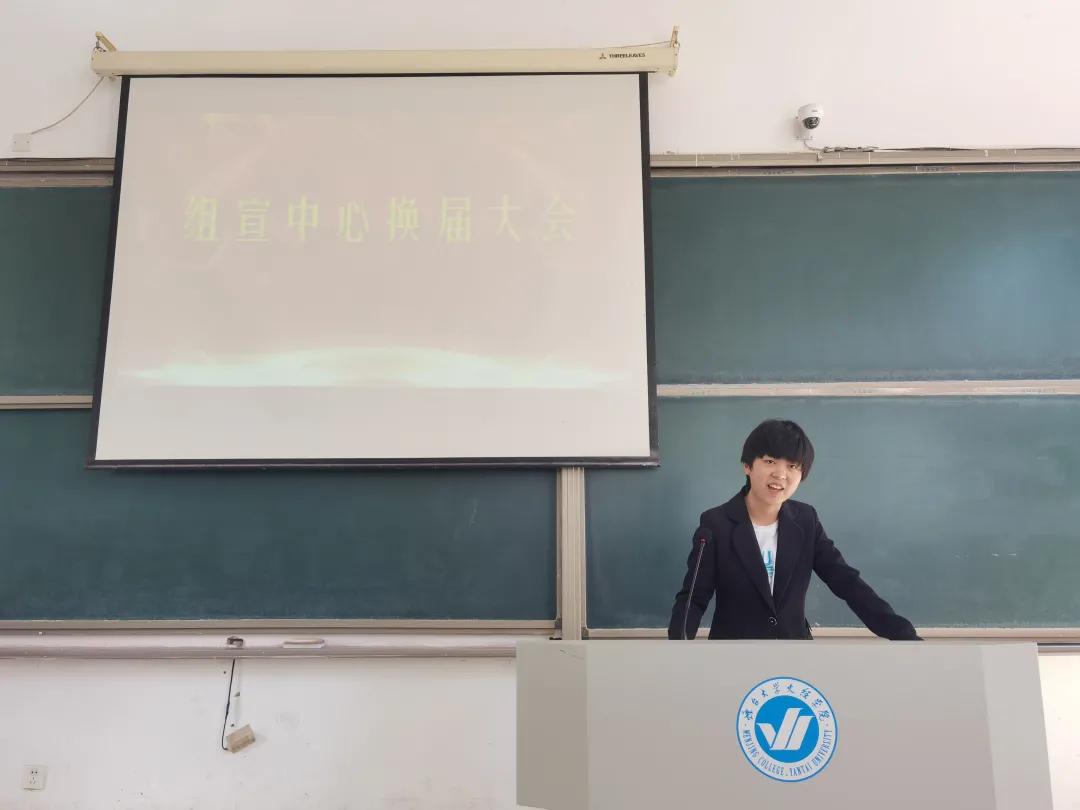 大会开始,上届部长依次上台总结本学年部门的工作情况以及在工作中存在的问题,对今后的工作提出建议并寄予厚望,希望下届学生干部可以秉承优良传统,开拓创新,锐意进取,把部门建设得更好。紧接着,新上任的部长依次上台做就职演讲,踌躇满志,对未来的工作充满信心。随后,赵蓓老师上台发言,她肯定了组织宣传中心一年来取得的丰硕成果,表扬了各部门认真负责、踏实肯干、任劳任怨的工作态度,对于大家的付出表示衷心感谢。她再次强调了组织宣传中心的宗旨和初心,对于未来的工作也是充满了期待。最后,各部门新部委积极踊跃上台发言,将现场气氛推向高潮。
