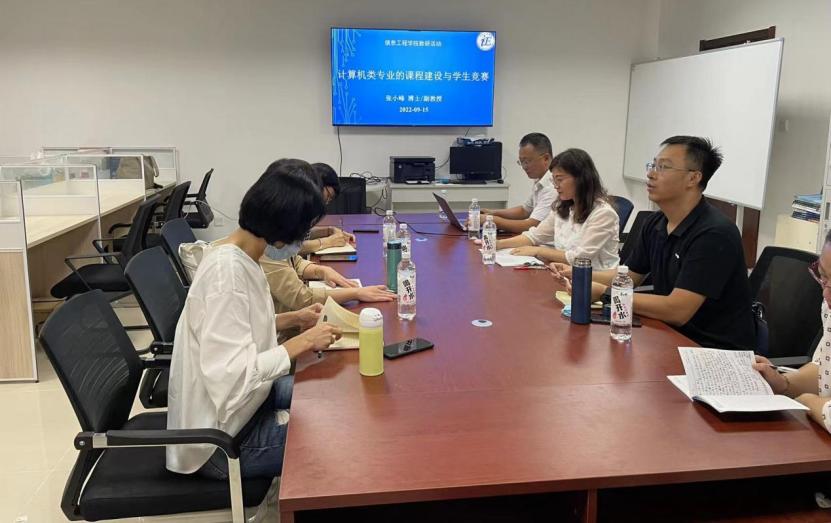 9月15日下午,信息工程学院开展教研活动,特邀鲁东大学信息与电气工程学院张小峰博士做题为《计算机类专业课程建设与学科竞赛》报告,信息工程学院全体教师参加,张静副院长主持会议。