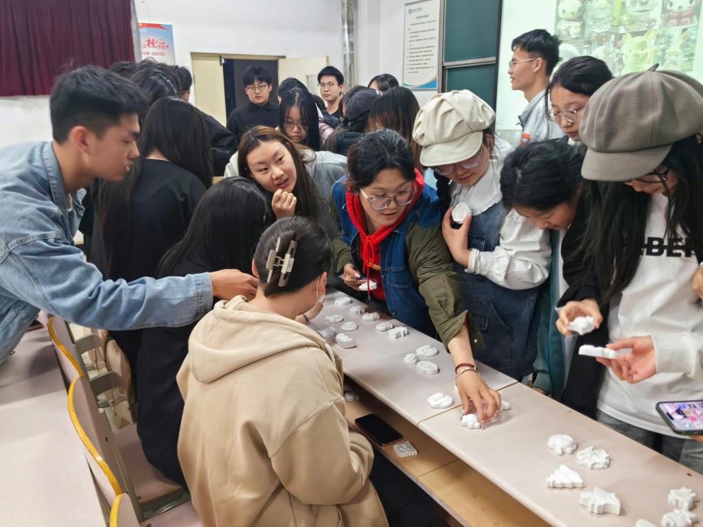 活动开始,参与者们选择了自己最喜爱的石膏娃娃,并根据个人喜好选择颜色和图案,用颜料涂鸦来表达自己的情感和思绪,创造出属于自己的作品。此外,活动还提供了“陪你去热爱这个世界”的条幅,学生通过在上面留下自己的痕迹,来表达自己对生活和世界的热爱。活动结束后,同学们互相分享了自己的创作过程和背后的情感故事,促进了彼此之间的交流。