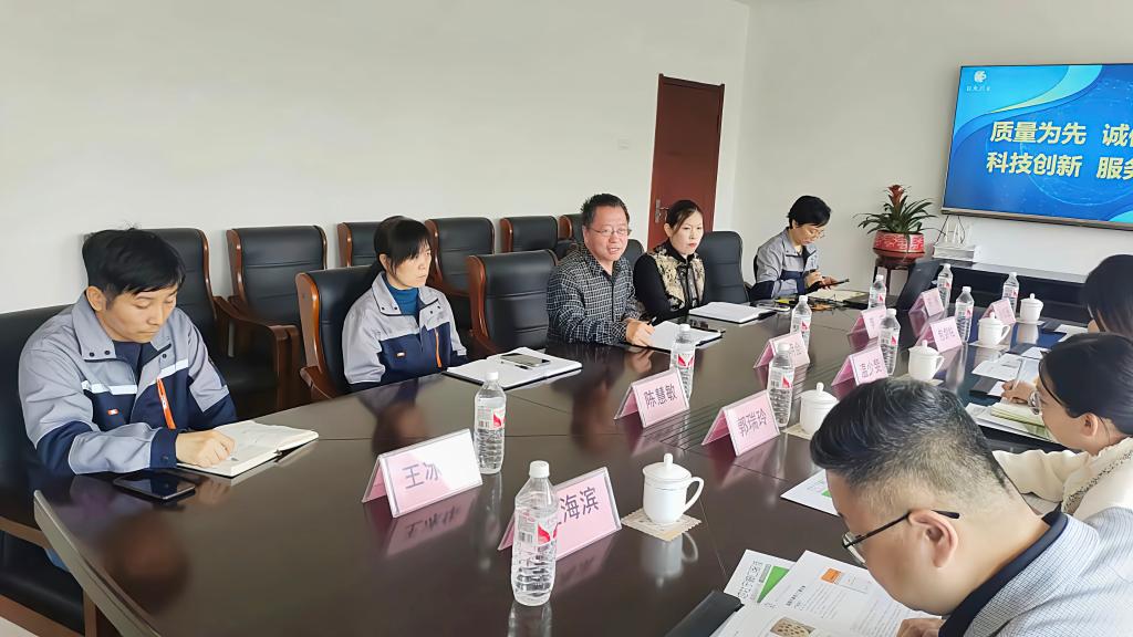 巨先药业常务副总宫明会,生产总监李宁,质量总监陈慧敏,技术研发部部长王冰华,综合管理部部长陈楠对我院一行的到来表示热烈欢迎。会议伊始,与会人员一同观看了企业宣传片,宫明会就企业发展概况、企业文化、企业产品等方面展开详细阐述。温少斐向企业负责人介绍专业特色、人才队伍、科研成果和学生培养等情况。校企双方表示,希望通过优势互补、资源共享,深化合作模式,推动产教融合、校企协同育人,共同培育更多符合社会发展需求的优秀人才。