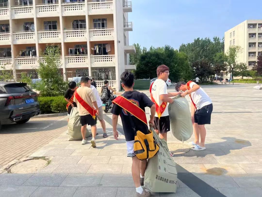 在服务过程中,文法学院志愿服务先锋队的每一位成员都全情投入。他们仔细地打包行李,轻拿轻放,遇到大件行李时,他们齐心协力共同搬运。穿梭在楼栋之间,汗水湿透了衣衫,但脸上始终洋溢着灿烂的笑容,每一次的抬手、每一次的弯腰,都凝聚着他们对毕业生深深的祝福与关爱。他们还与毕业生们亲切交流,倾听他们的故事和对未来的憧憬,给予鼓励与祝福,让整个氛围更加温馨融洽。